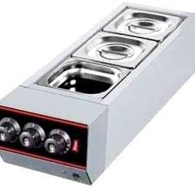 — Материал корпуса: нержавеющая сталь — 3 независимые регулировки температуры — В комплект поставки входят 3хGN 1/6 глубиной 100 мм с крышками — Температурный режим, С: до +110