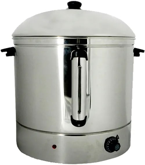 430x480x500мм (с учетом крышки, ручек и регулятора), 24л, 2,5кВт, 220В, 6кг, без крана для слива воды, внешний диаметр 410мм, внутренний диаметр 400мм, выота без крышки 370мм