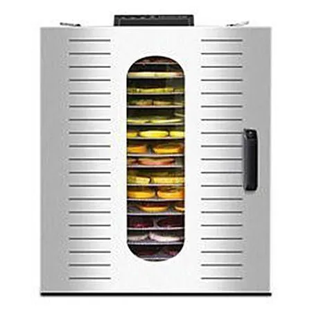 464*402*440мм, 11,5кг, 220В, 1кВт, 1 вентилятор, 12 уровней, 12 решеток в комплекте,размер решеток 385*283мм, расстояние между решетками 30мм, температура 30-90C, таймер от 30мин до 24ч, материал корпуса и решеток нерж. сталь