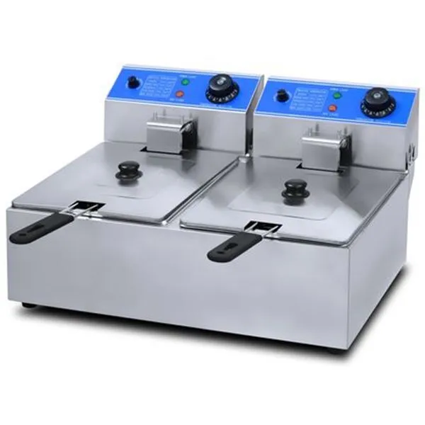 550x460x300мм, 6+6л, с крышкой, 2x2,5кВт, 220В, 8 кг, температурный режим 60-200 С, в комплектацию входят корзины и крышки, 2 вилкиХарактеристики