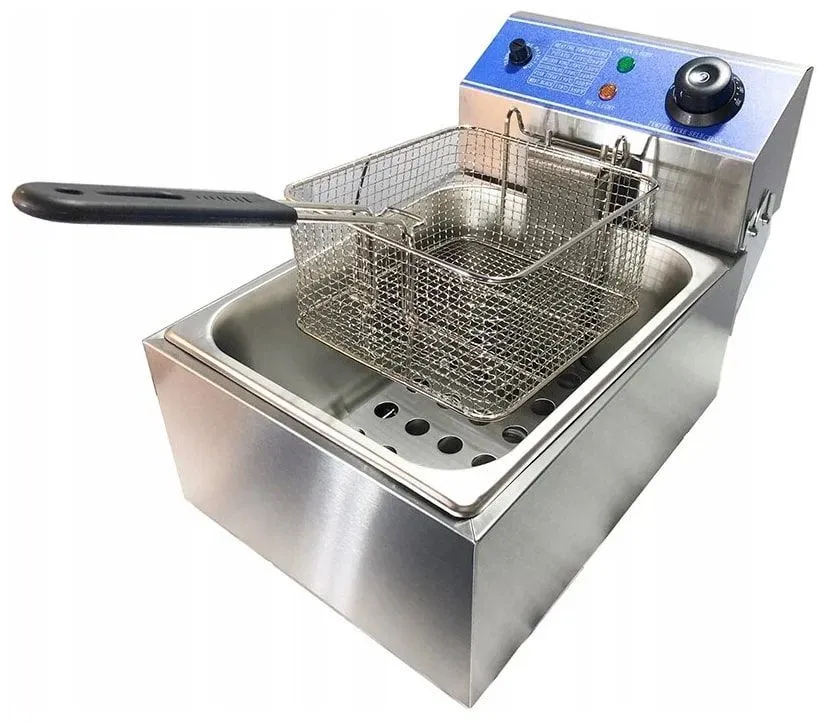 Профессиональная фритюрница HURAKAN HKN-FR6E предназначена для обжаривания продуктов, таких как картофель, мясо, рыба, овощи и фрукты в кляре, в разогретом до определенной температуры растительном или животном масле.