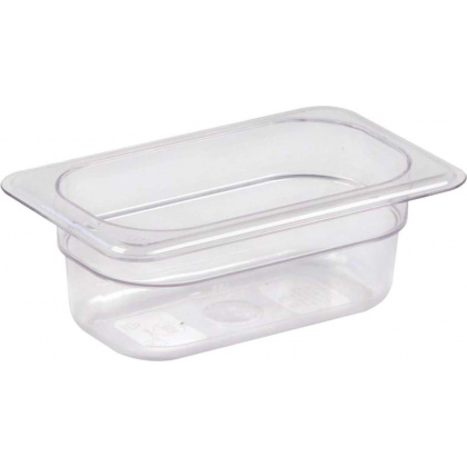 Гастроемкость Hurakan GN-K 1/9-65. Гастроемкости из поликарбоната отличаются малым весом, но при этом ударопрочностью и стабильной формой, термостойкостью от -40С до +100С, не имеют вкуса и запаха, не оказывают вредного влияния на хранимые в них блюда, пригодны к автоматической мойке в посудомоечных машинах, удобны тем, что продукт находящийся в нутрии всегда видно. Для демонстрации готовой продукции потребителям лучше использовать прозрачные гастроемкости из поликарбоната GN-K.