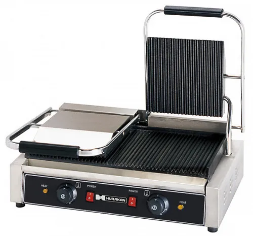 Гриль HURAKAN HKN-PE44R предназначен для разогрева и приготовления широкого ассортимента блюд, быстрозамороженных или уже готовых к употреблению продуктов. Благодаря двухстороннему воздействию рабочих поверхностей обеспечивает равномерное поджаривание любых продуктов, придавая аппетитную корочку и сохраняя вкусовые качества продуктов. За счет наличия в данной модели двух независимых рабочих поверхностей есть возможность за короткое время приготовить большое количество пищи, а также длительное время поддерживать уже готовую продукцию в горячем состоянии. Используется на предприятиях общественного питания.
