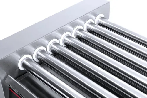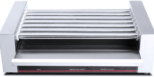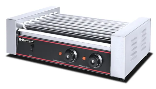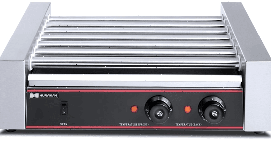 Гриль роликовый Hurakan HKN-GW7M применяется для обжаривания сосисок и сарделек, мясных и рыбных рулетов. Гриль оборудован регулируемыми термостатами и индикаторами нагрева. Корпус и ролики изготовлены из нержавеющей стали.