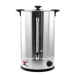265*265*515мм, 1,8кВт, 220В, 3,5 кг, 15л, (габариты с ручками и краном 340х335х515мм), материал корпуса: нержавеющая сталь, металлический кран, двойные стенки, тип подачи воды: заливной, контроль уровня и температуры воды, индикаторы нагрева, закрытый съемный тэн