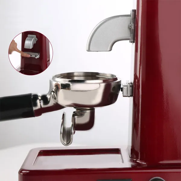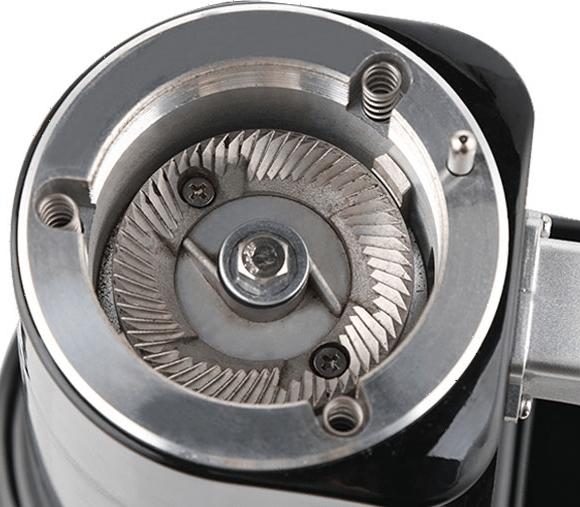 — Материал бункера для кофейных зерен - ударопрочный пластик — Материал ножей - закаленная сталь — Удобное включение кофемолки нажатием холдером на кнопку — Размер жерновов - 60 мм