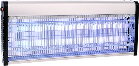 Лампа инсектицидная Hurakan HKN-LIN150. Инсектицидная лампа используется для привлечения невидимым излучением летающих насекомых, например, мух, мотыльков, комаров и прочих летающих вредителей, с последующим их уничтожением электрическим током. Высокое напряжение, достаточное для поражения насекомых, подведено к металлическим решеткам в основе конструкции.