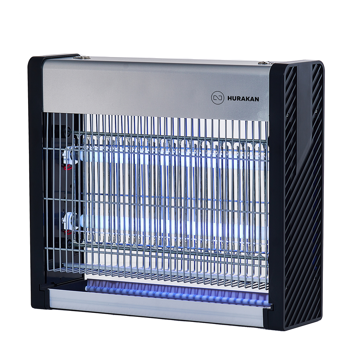 Инсектицидная лампа Hurakan HKN-MID50N используется для привлечения невидимым излучением летающих насекомых, например, мух, мотыльков, комаров и прочих летающих вредителей, с последующим их уничтожением электрическим током. Высокое напряжение, достаточное для поражения насекомых, подведено к металлическим решеткам в основе конструкции.