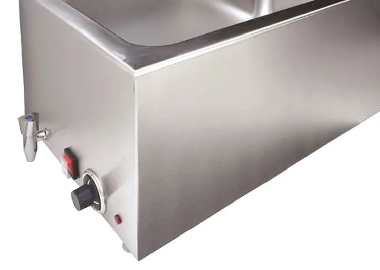 Емкость: 24/36 л Материал корпуса: нержавеющая сталь Возможно использование гастроемкостей GN1/3-150 (3 шт.) и GN1/2-150 (2 шт.) Кран для слива воды