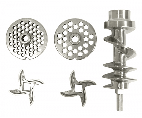 - Если выбрана стандартная режущая система, мясорубка Hurakan HKN-22SS подходит для предприятий с небольшой проходимостью и ограниченными потребностями в помоле продуктов.