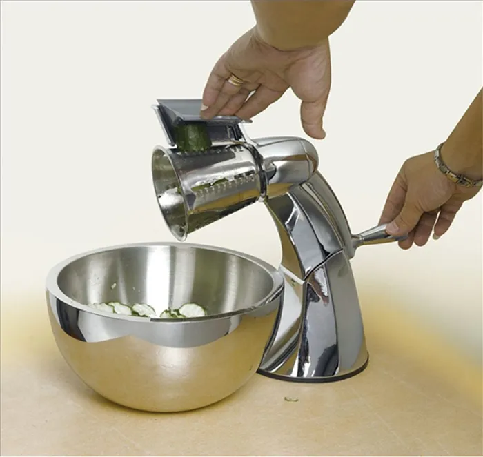Овощерезка HKN-ATHOS-05M – настольная модель, применяется для нарезки и измельчения фруктов, овощей, сухого печенья и сыра, имеет компактные габариты и огромные функциональные возможности. Материал корпуса облегчен за счет легкого и прочного алюминиевого сплава. Овощерезка надежно крепится к рабочей поверхности мощной присоской.