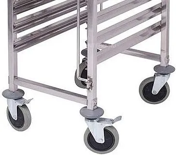 • Габариты в упаковке (В×Ш×Г): 161×67×12 • Материал направляющих: Нержавеющая сталь AISI 201 • Материал стоек: Нержавеющая сталь470х620х1735мм, материал нерж.сталь 201, толщина 1мм, 15 направляющих под противни 600*400мм, ширина направляющих 40мм, расстояние между противнями 8см, 4 колеса 5" (2 колеса со стопором), фиксаторы противней с двух сторон, не предназначена для использования внутри камер ротационных печей или камер шоковой заморозки