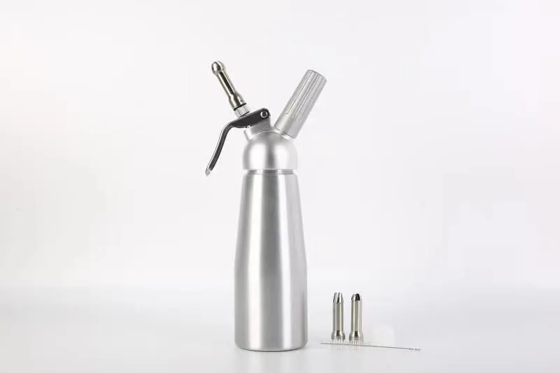 125х80х310мм, 500мл, 3 насадки из нерж. стали, материал корпуса и крышки - алюминиевый сплав, подходят баллоны N2O ( в комплект не входят)Характеристики