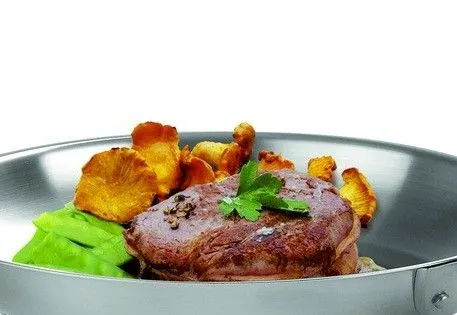 360х90мм, сковорода-вок с крышкой, диаметр 36 см, толщина стенок сковороды 2,5мм, толщина крышки 1мм, 304 нерж.сталь, конструкция самой сковороды трехслойная., посередине (дно и стенки) находится слой алюминия, который облегчает сковороду, более равномерно распределяет тепло, сковорода подходит для приготовления только на плоских нагревательных поверхностях, включая индукционные, можно мыть в посудомоечной машине.Характеристики